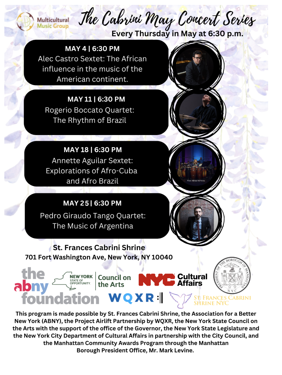 Come join us for the Cabrini Shrine May Concert Series!