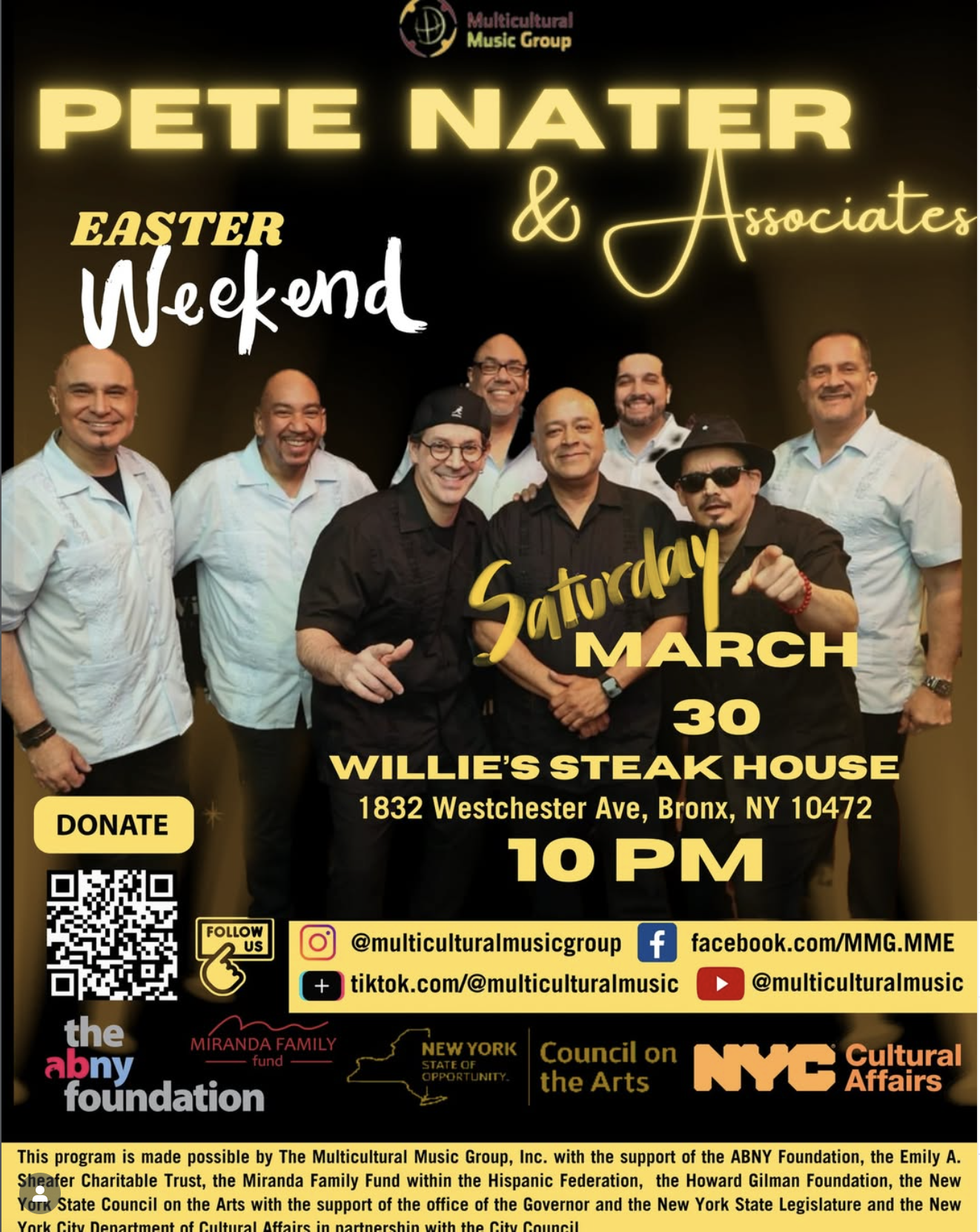Pete Nater is back at Willie's Steak House for Easter Weekend! Join us for a community celebration full of salsa and camaraderie.